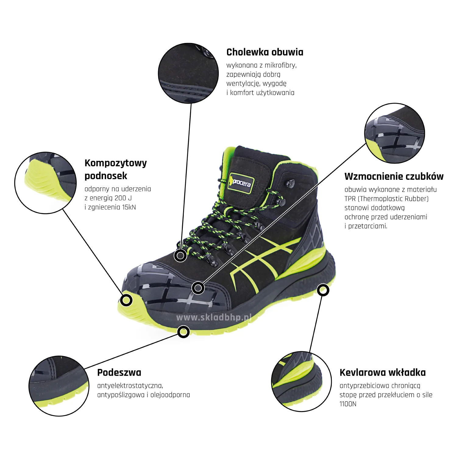 ✔️ Trzewiki ATLANTIS S1P z kompozytowym podnoskiem ochronnym odpornym na uderzenia z energią 200 J i zgniecenia 15kN oraz niemetalową wkładką antyprzebiciową