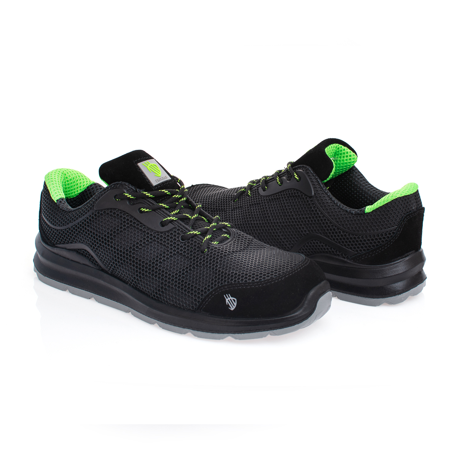 - Półbuty robocze z metalowym podnoskiem ochronnym odpornym na uderzenia i zgniecenia oraz stalową wkładką antyprzebiciową chroniącą przed przekłuciem. Półbuty ochronne z antyelektrostatyczną i antypoślizgową podeszwą.