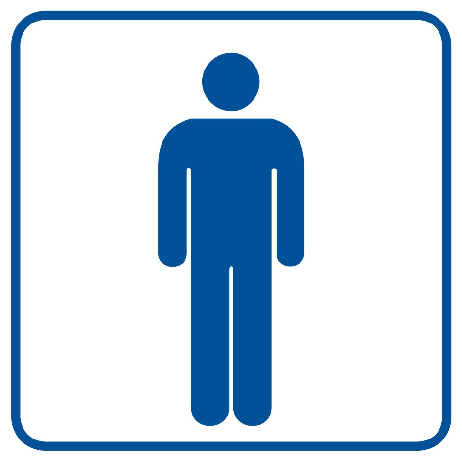 - Znak informacyjny BHP toaleta męska. WC. Wykonany z sztywnej płyty PCV. Nieświecący.